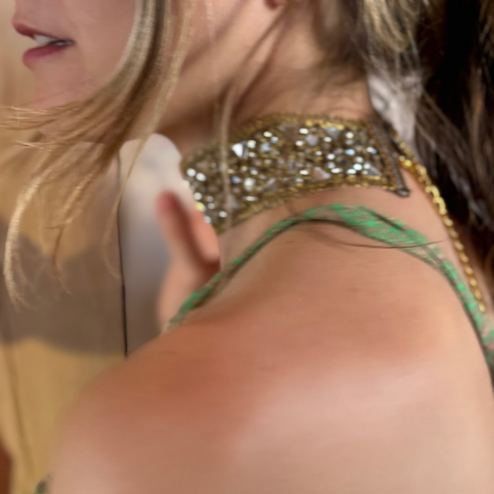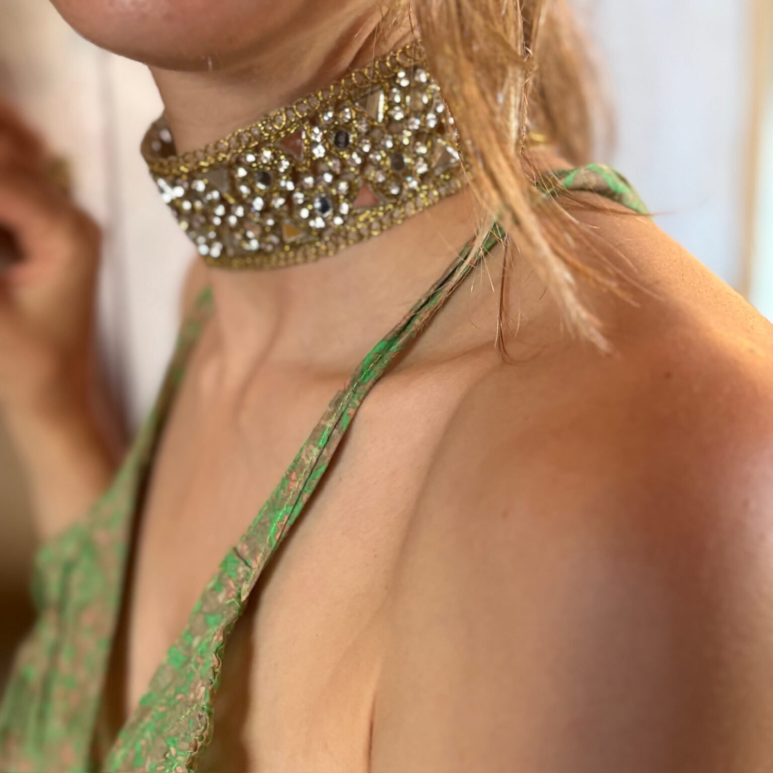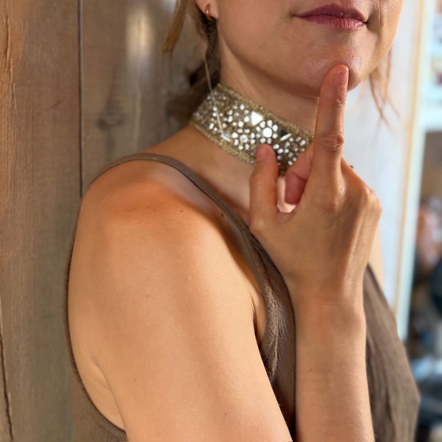 El Choker Dorado Lluvia de Estrellas con Espejos es una joya que combina brillo, elegancia y un toque de fantasía. Su diseño está inspirado en el resplandor del cielo nocturno, con pequeñas estrellas doradas y espejos diminutos que reflejan la luz con cada movimiento. Es perfecto para realzar cualquier look, desde algo sencillo hasta un outfit de noche. Ligero, ajustable y cómodo, este choker añade un destello especial que llama la atención sin perder delicadeza. Ideal para quienes disfrutan expresar su estilo con detalles luminosos y sofisticados.