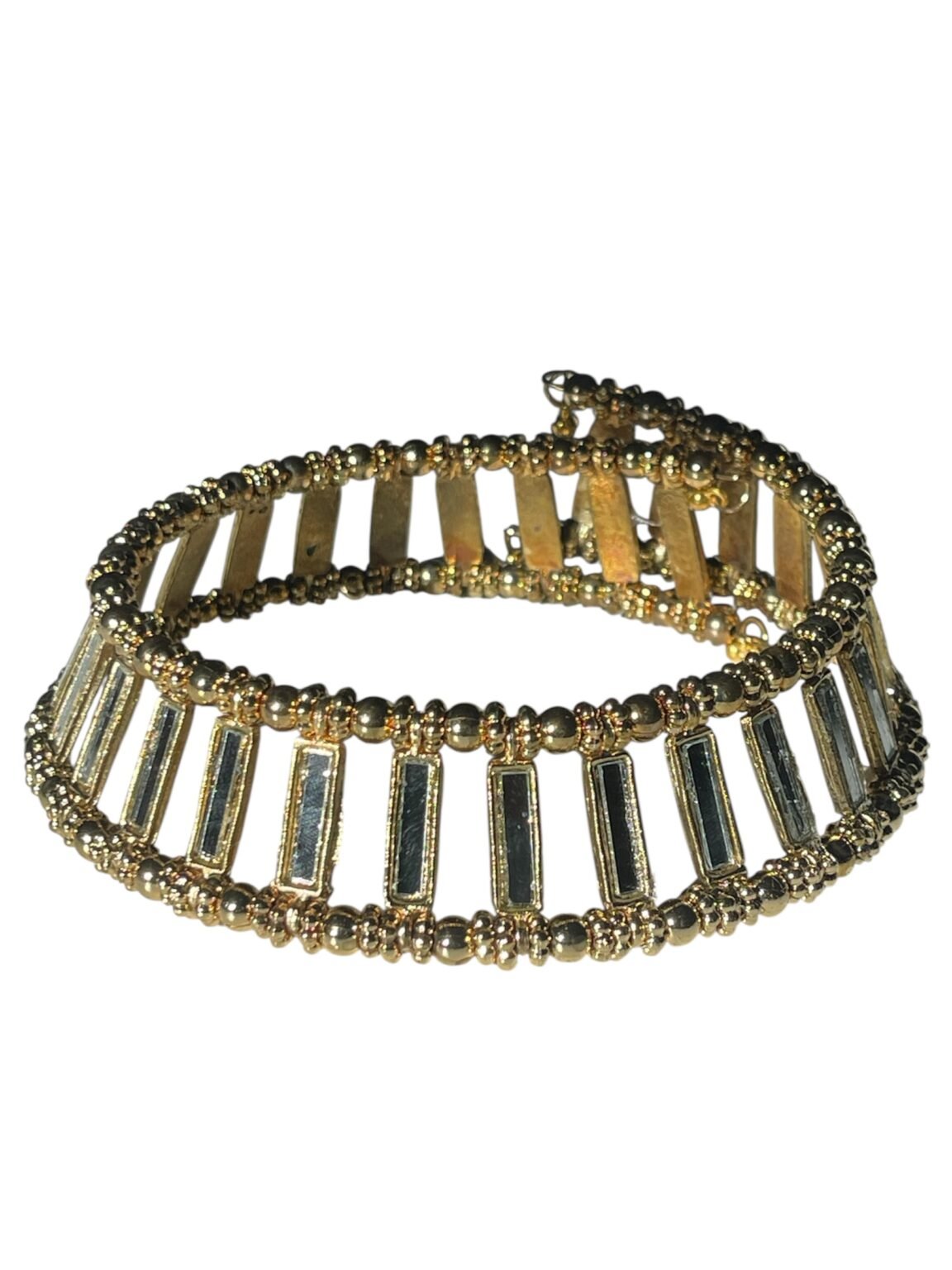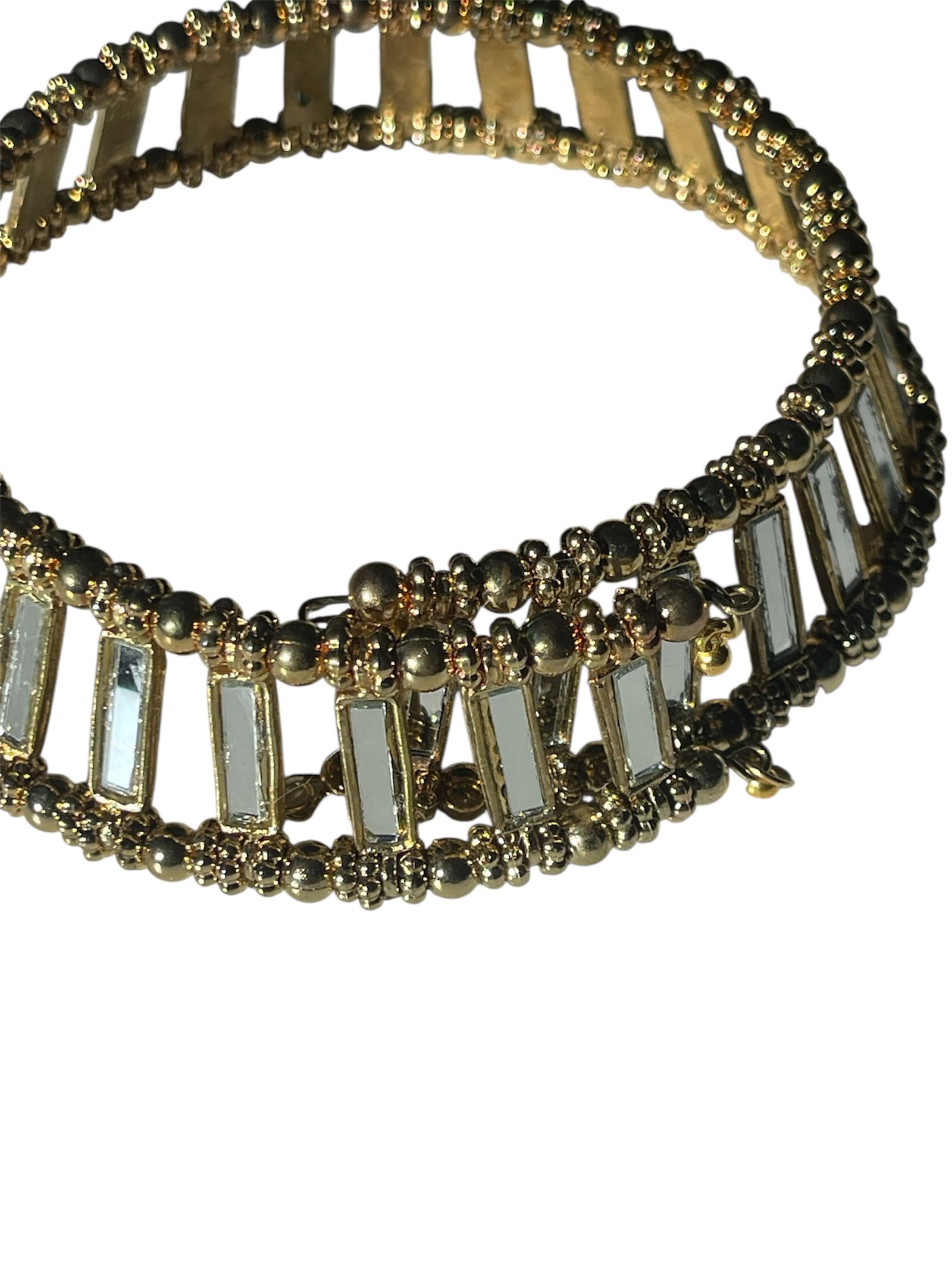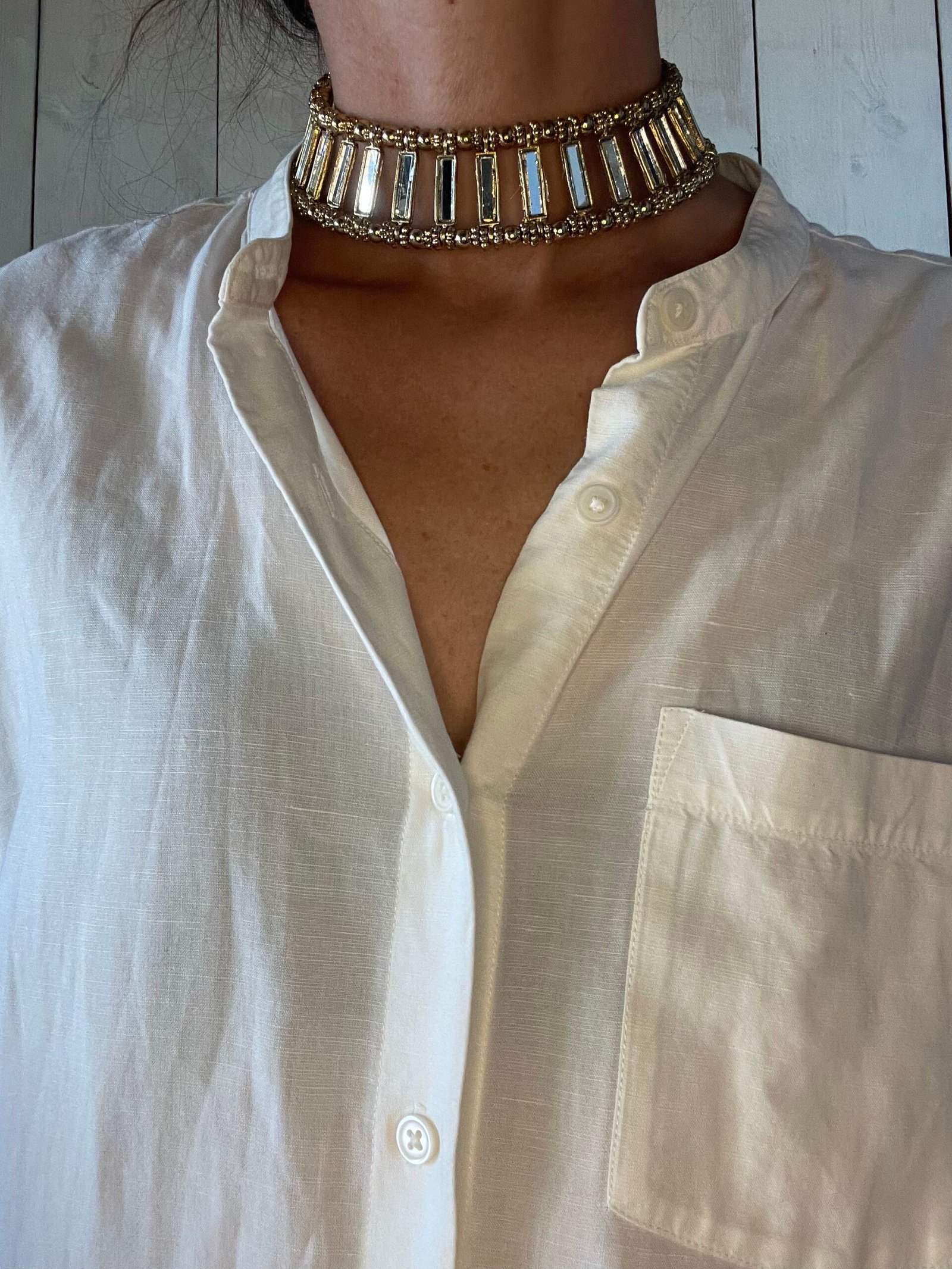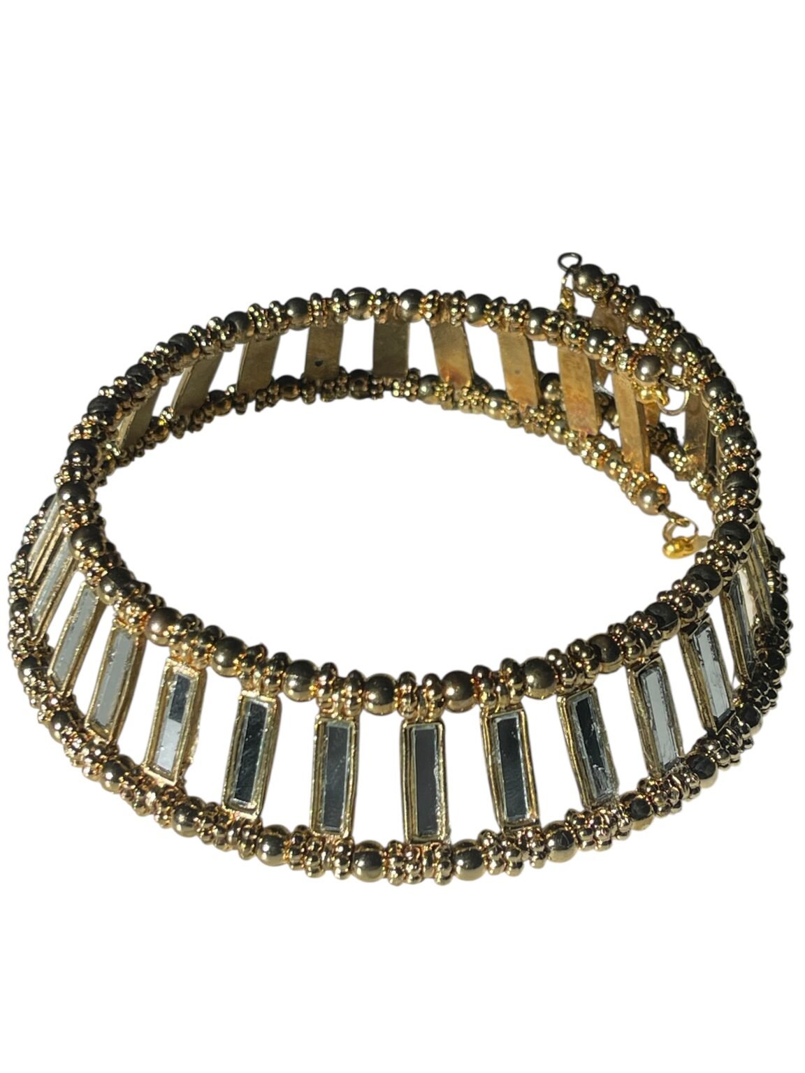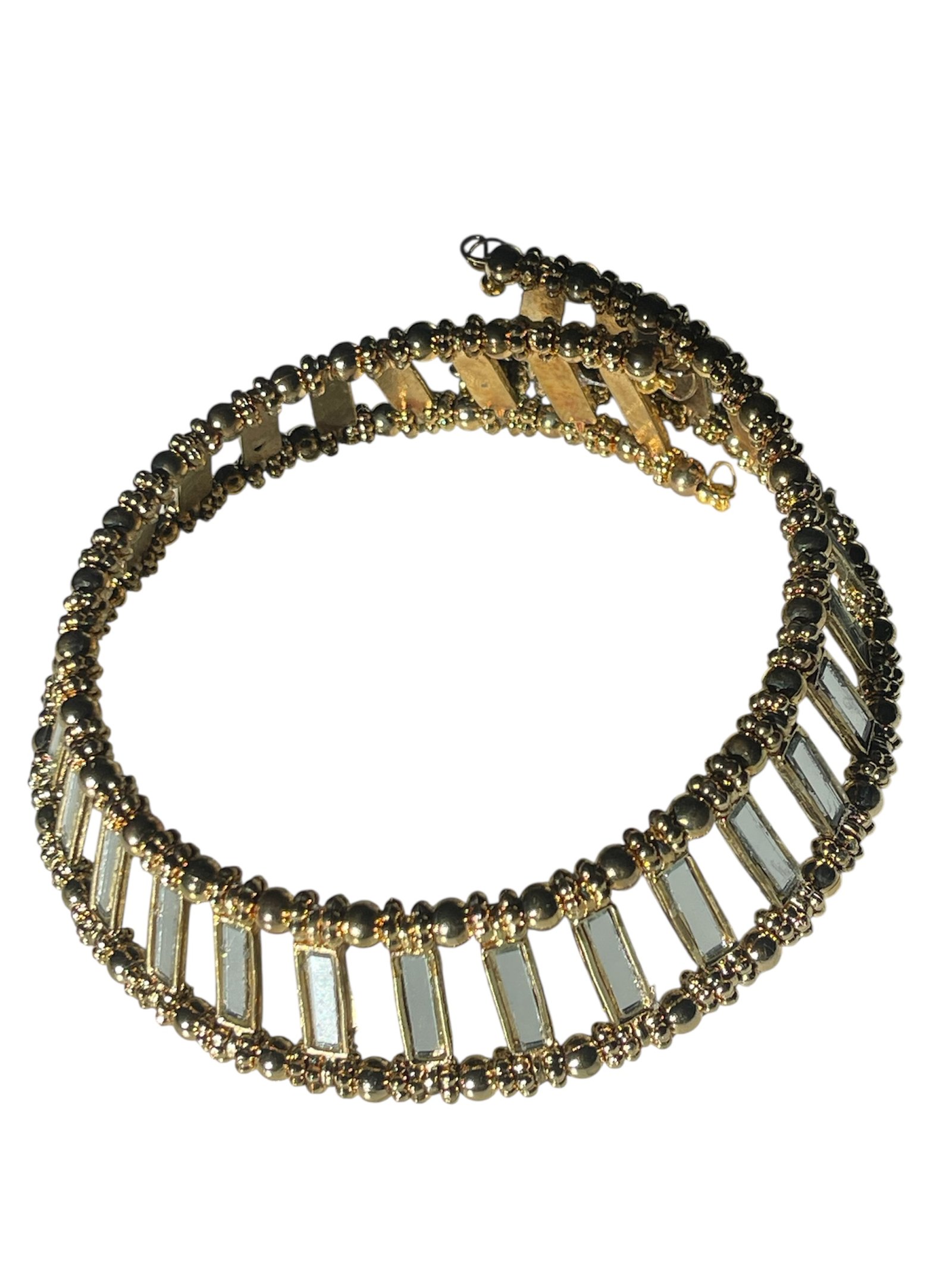 Detalles del Producto:– El collar es de color dorado, lo que lo hace destacar.- Incluye espejos rectangulares que reflejan la luz de manera especial.- Perfecto para ocasiones especiales o para un look diario sofisticado.