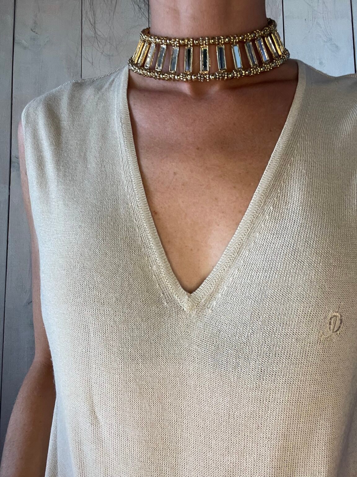 ✨ Uso del Collar:- Este collar es versátil y se puede combinar con diferentes estilos.- Añade un toque de elegancia a cualquier outfit.- Ideal para quienes aman los accesorios dorados con detalles de espejos.